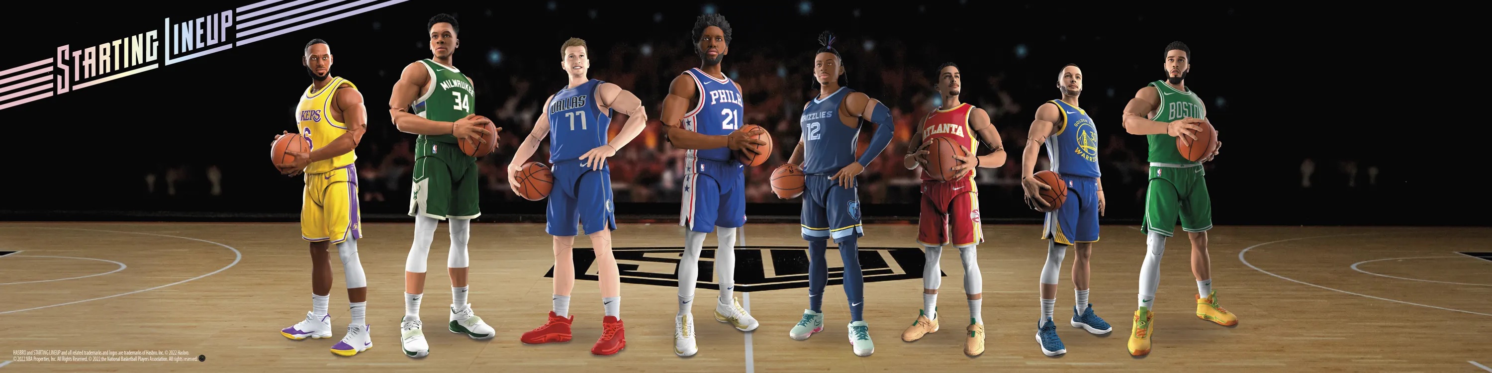 | Starting Lineups return from a 21 year hiatus. Figures are now available for pre-orderat hasbropulse.com for $49.99 each Series 1 includes: Lebron James - Los Angeles Lakers Joel Embiid - Philadelphia 76ers Trae Young - Atlanta Hawks Steph Curry - Golden State Warriors Jason Tatum - Boston Celtics Ja Morant - Memphis Grizzlies Luka Doncic - Dallas Mavericks Giannis Antetokounmpo - Milwaukee Bucks ![]() Hasbro abandoned the previous cards in favor of a new box design. Each figure also comes with a card and an NFT. |